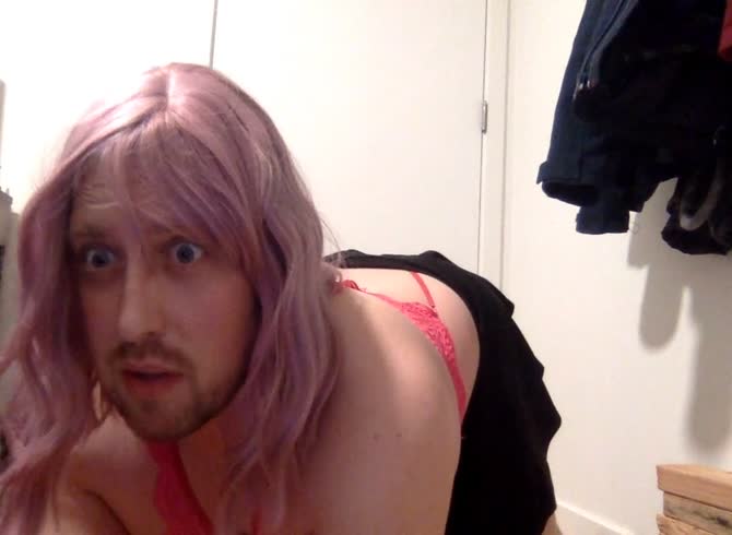 Wild teenager in a red wig getting fucked by a large dog fro...