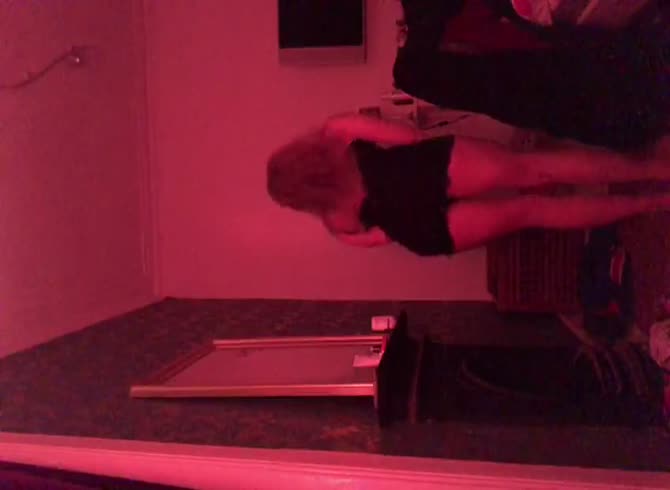 Beautiful bleached-blonde slides her jeans and panties off f...