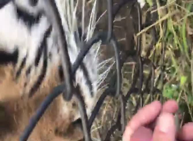 A dangerous game right here with a big kitty, and an exciting one too! Help me look for the origins of the video.